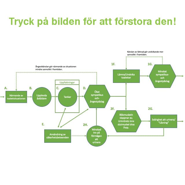 I en KBT-behandling för paruresis utgår vi från denna modell för att förstå vad som håller problemet vid liv.